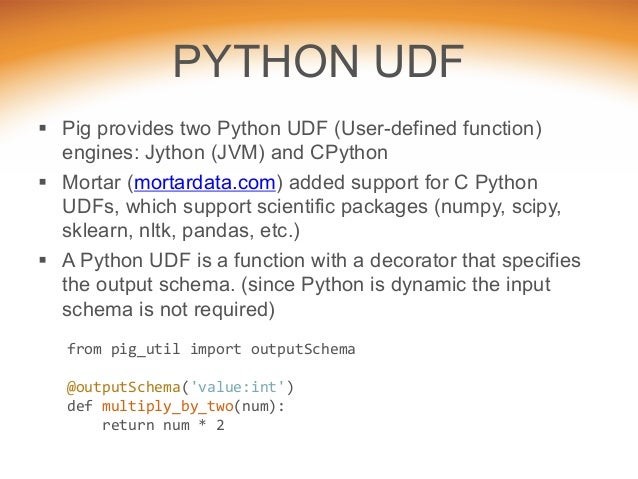 CLASSIFICATION ALGORITHMS FOR BIG DATA ANALYSIS, A MAP REDUCE Java, Jython, Python, JavaScript, Ruby and Groovy. Through UDFs needs. Pig’s engine takes a Pig Latin script and compiles it automatically in MapReduce jobs. 3. ICP: DATA MINING PACKAGE . InterIMAGE Cloud ... Doc Viewer
